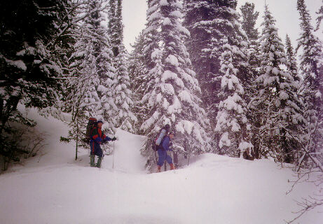 лесом, а сами пошли пешком сняв лыжи. Дорога спускается ниже, и