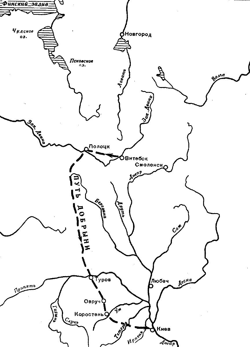 местам, где в X веке жил и действовал Добрыня - прототип героя русских былин