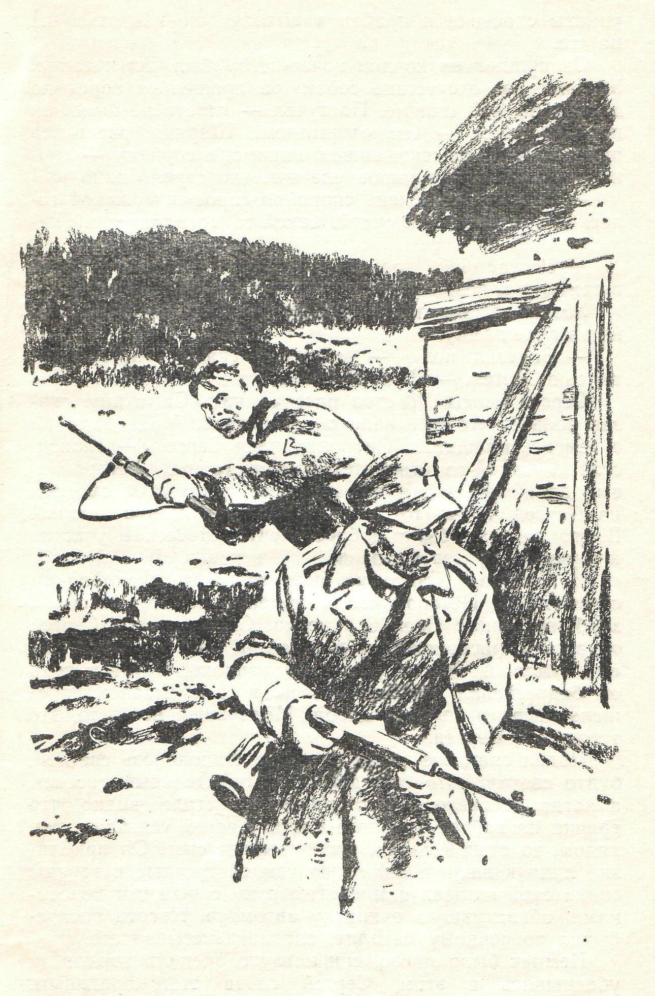 автоматчику, но тут вступил в бой автоматчик, сидевший на чердаке и не