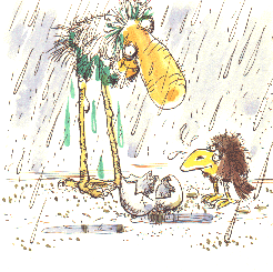 Марабу. Что такое дождь? (Появляется, белый: дождь смыл с него всю краску.)