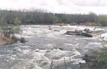 На входе пологий слив, потом очень мелкая шивера (чисто пройти не