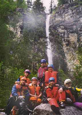 образует водопад около 2 метров. Оставляем рюкзаки и пассажиров с Верой.