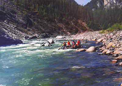 не влететь в скалу по левому берегу, на которую несет очень большой поток,