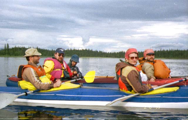 "На бугре" стояла одна из групп-попутчиц, получившая по возрастному принципу условное обозначение "комсомольцы". 6 юношей и 4 девушки, "Таймень", 2 КНБ "Мурена", 3 самодельных стеклопластиковых каяка и один полиэтиленовый "Инвайдер".